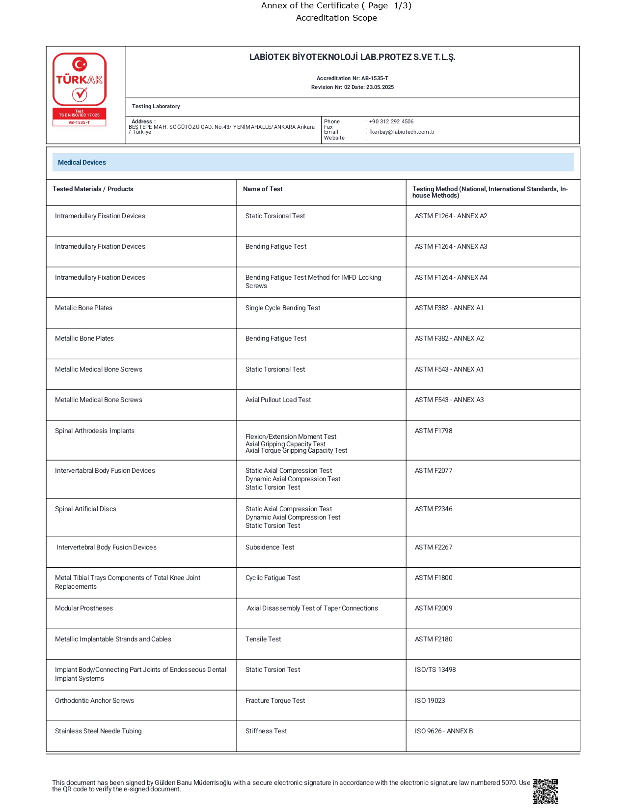 Labiotech is accredited as a test laboratory by Turkish Accreditation Agency (TÜRKAK) under registration number AB-1535-T for “ISO 17025;2017 Testing and Calibration Laboratories”.